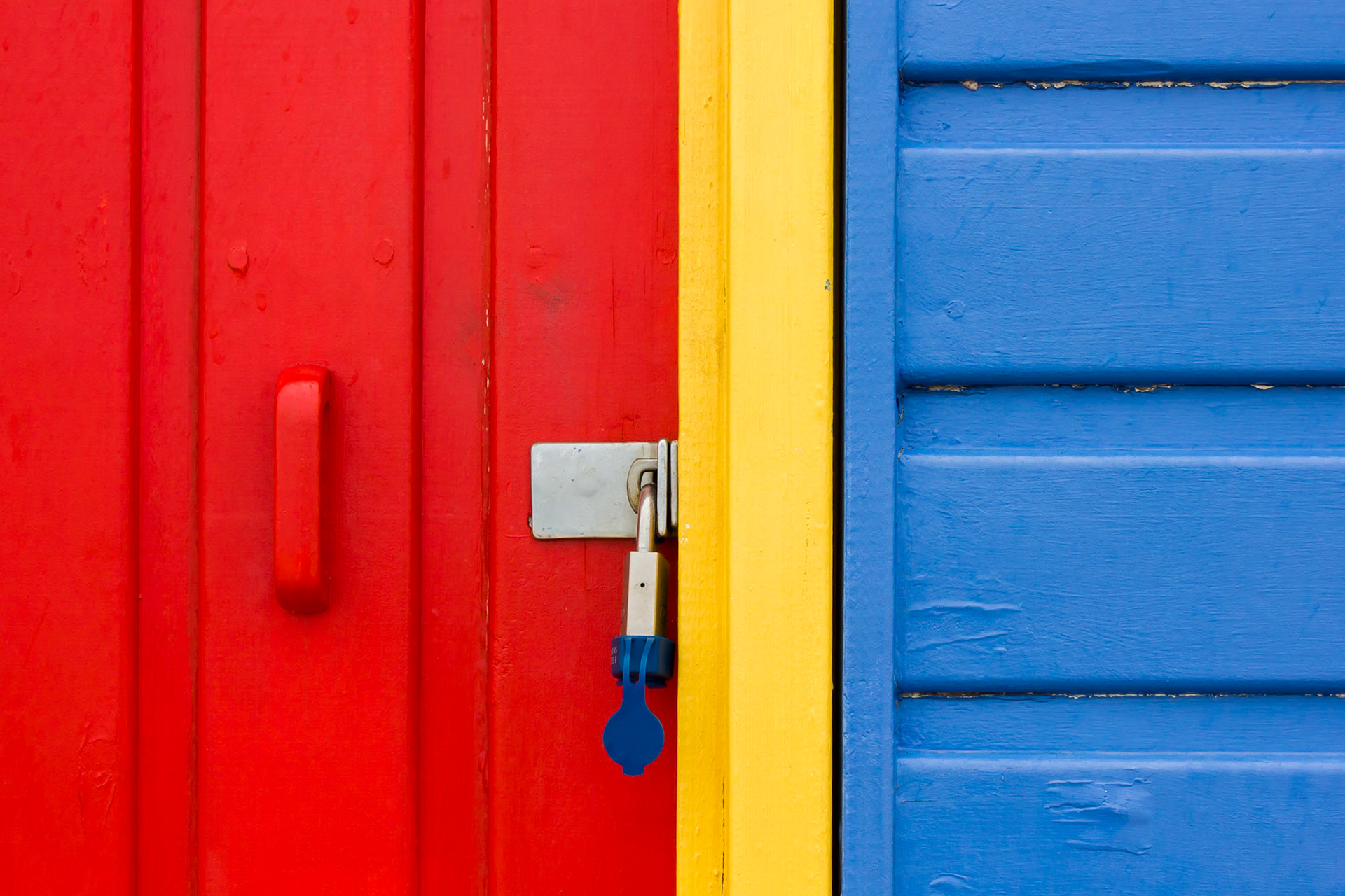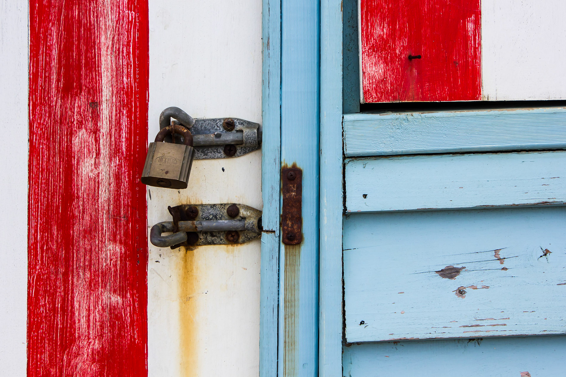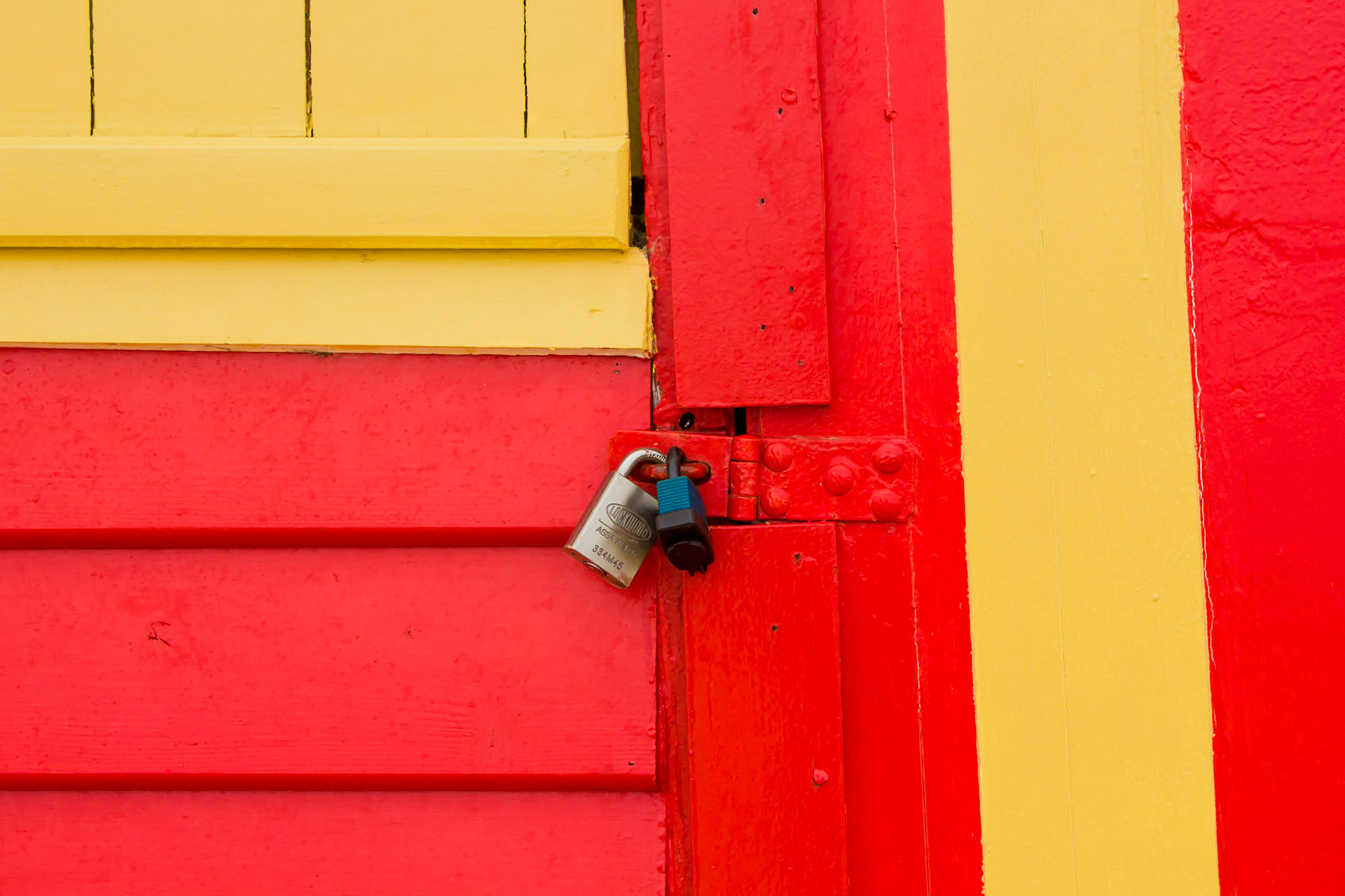 When walking along Brighton Beach (in Victoria, Australia) the brightly coloured beach huts and their locks caught my eye.