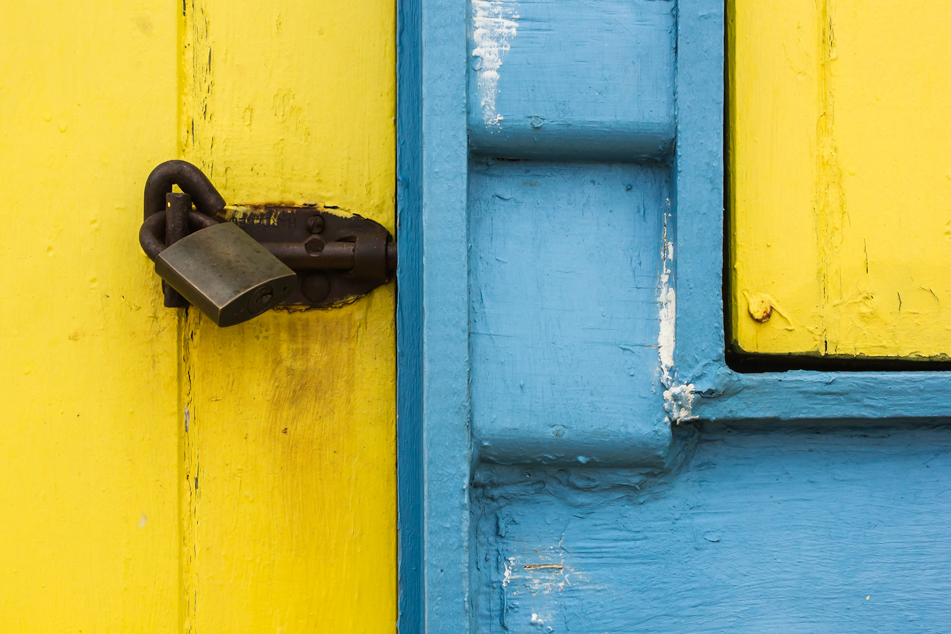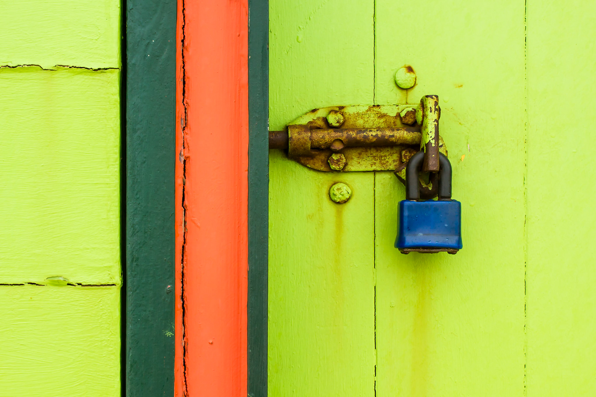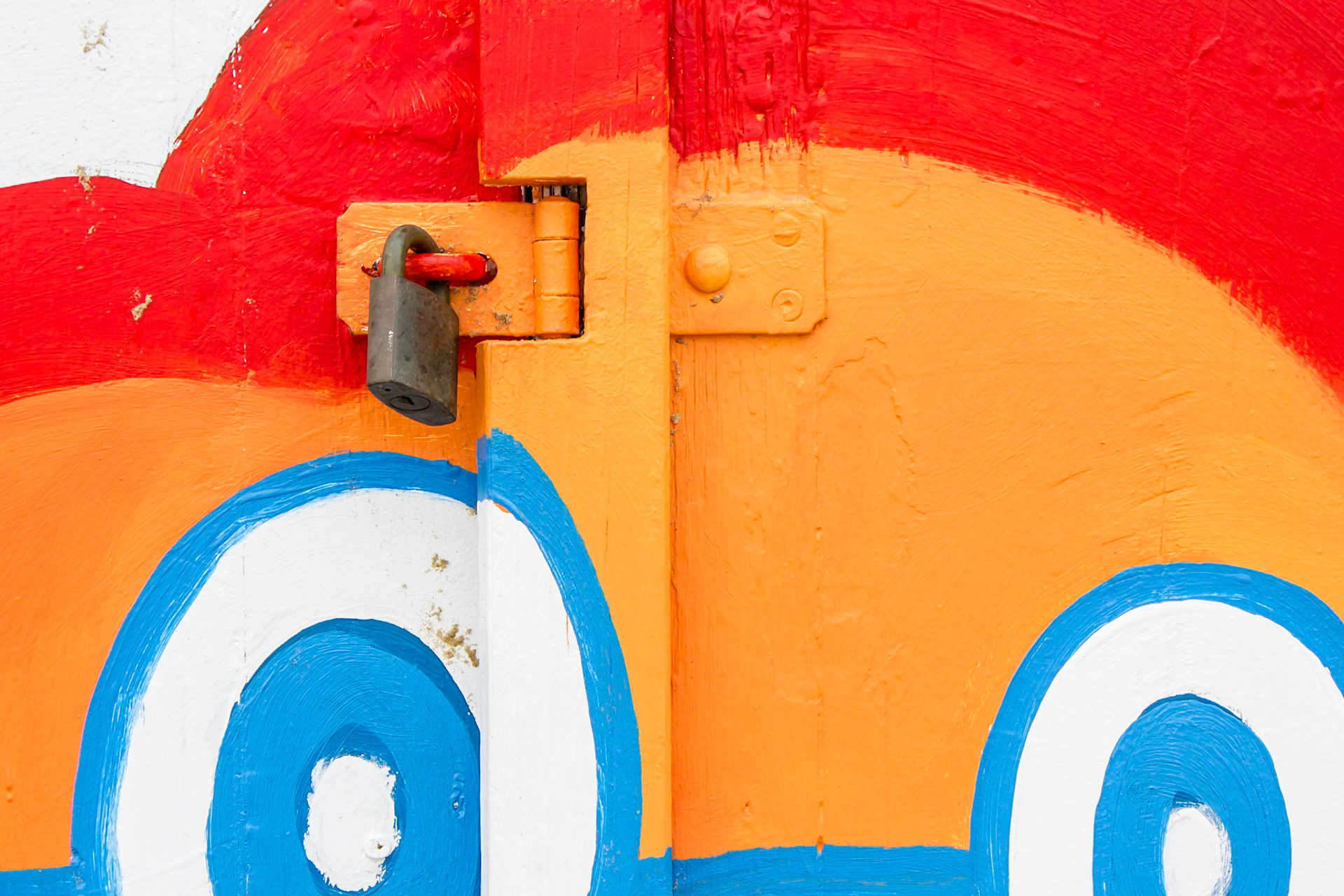 When walking along Brighton Beach (in Victoria, Australia) the brightly coloured beach huts and their locks caught my eye.